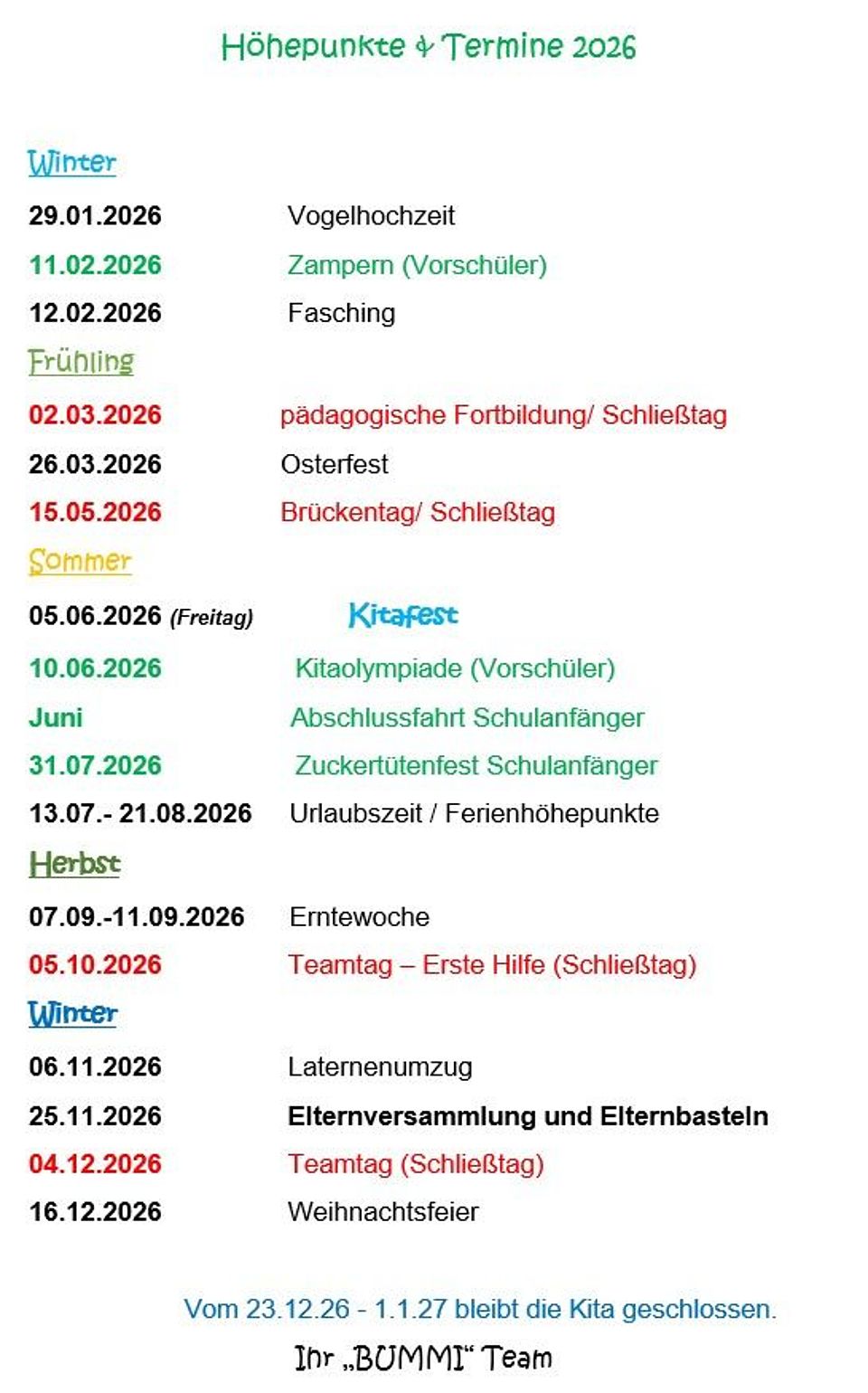 Höhepunkte & Termine 2026